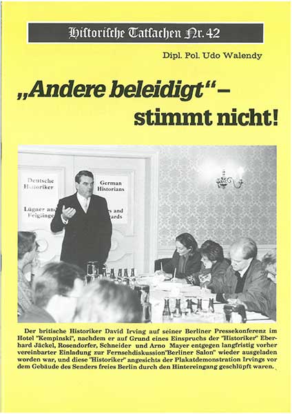 Historische Tatsachen Nr. 42 - „Andere beleidigt“ stimmt nicht